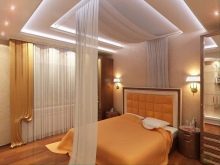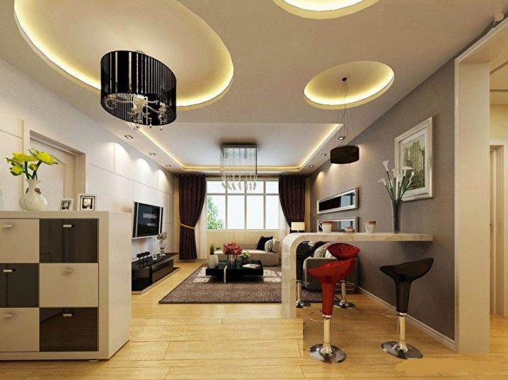 Професионалните дизайнери препоръчват да се правят плитки нива, като се фокусира върху централната част на конструкцията с помощта на осветление и мазилка.