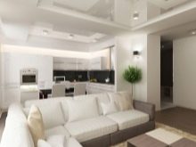 - Възможност за бързо създаване на осветление. Наличието на няколко нива в един дизайн ви позволява да създадете необходимото ниво на осветление с помощта на осветителни тела, направени в различен стил.