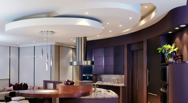Сложните тавани се характеризират със значително сложни структури, създаването на които отнема много време и усилия. Такъв таван може да бъде направен под формата на една или няколко красиви фигури, инсталирани на второ или трето ниво. Шикозният вид на такива продукти придава на атмосферата аристократична и естетическа красота. Стая с подобен декоративен дизайн изглежда наистина стилна и модерна..