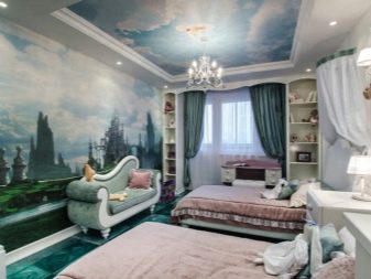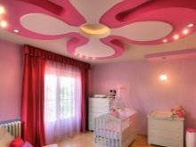 Къдравите тавани на детски теми изглеждат красиви и ярки. Това могат да бъдат дизайни под формата на слънце, цвете, облак, зигзаг или други мотиви от детски приказки. Такива невероятни елементи на декора добавят уют в стаята и създават весело настроение. В стая с подобно покритие на тавана децата се чувстват комфортно, показвайки максималната си активност..