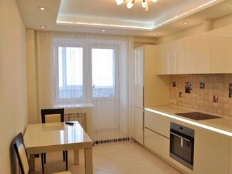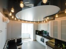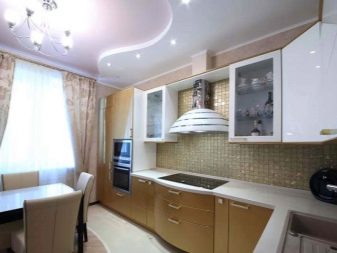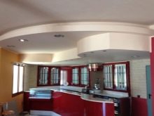- Кухня. С помощта на къдрав таван кухнята може да бъде направена не само функционална, но и красива. Препоръчва се да направите избор в полза на класическите опции, чийто състав изненадва с разнообразието си. Изберете цветова палитра въз основа на цвета на мебелите и пода. Минималният брой декоративни елементи е ключът към създаването на наистина практична и естетически приятна кухня..