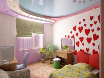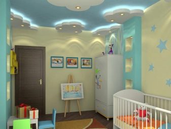 Препоръчва се напълно да се изключи наличието на масивни фигури на тавана, тъй като те влияят негативно върху психиката на децата. Много по -добре е, ако таванът в детската стая е направен в лека форма, създавайки усещане за уют и комфорт..