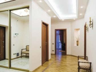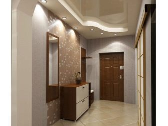 - Коридорът. Това е коридорът, който прави първото впечатление за къщата като цяло. Ето защо е важно да го подредите възможно най -красиво и стилно. За това едните или двустепенните къдрави тавани в светли цветове са идеални, което ще направи цялостния дизайн по-интересен и оригинален..