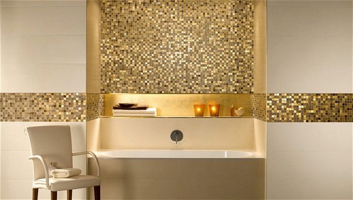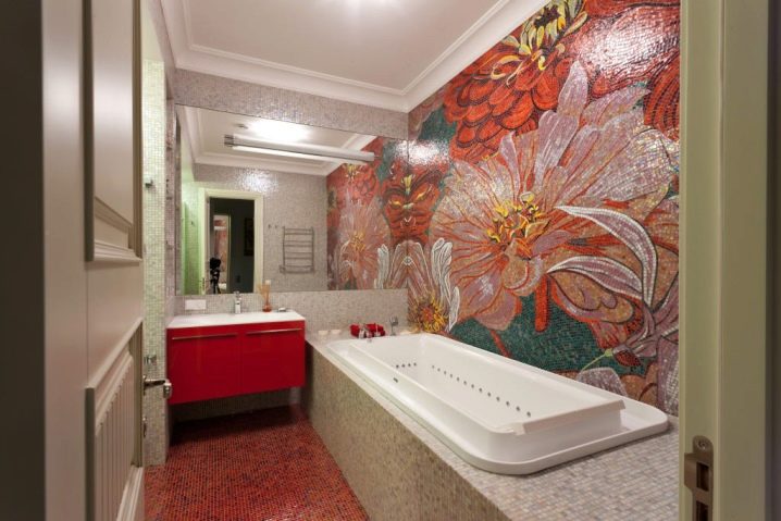 За оптимален баланс на мозаечните нюанси е необходимо да се придържате към принципа на златната среда: монохромните повърхности могат да се комбинират с цветни орнаменти, ярки панели, многоцветни рамки, абстрактни елементи.