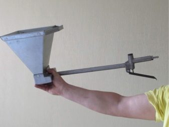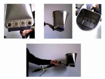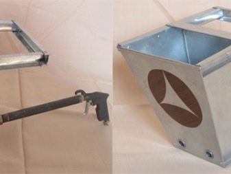 Обикновено, за да се ускори работният поток, накрайникът за определен вид материал трябва да бъде инсталиран преди пръскане (например за боядисване или нанасяне на лепило). Битовите уреди обаче често не могат да се справят с бетона. Недостатъкът на ръчно изработените бункери е фактът, че те не са предназначени за довършване на тавана. Това трябва да се има предвид, когато правите сами продукта. В този случай “бункера” ще трябва да бъде променен или закупен от специализирано устройство..