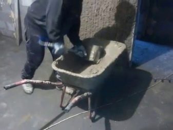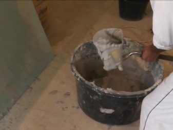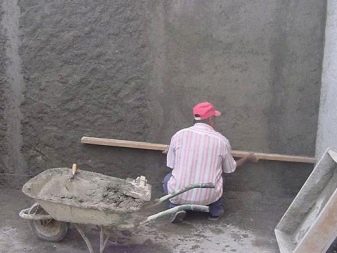 Принципът на действие на кофата е прост. Те стартират цялото решение наведнъж (няма да има време да изсъхне). След това кофата се пълни и изпразва отново и отново, докато цялата обработена площ се покрие с гипсова смес. След това вземете правило или широка шпатула и изравнете основата.