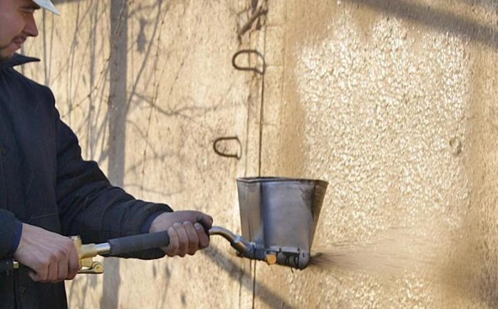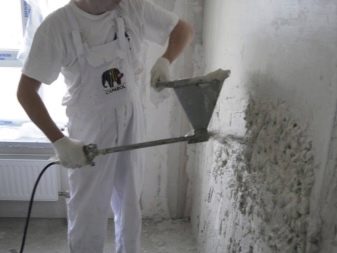 Преди да използвате допълнителното устройство, повърхността се навлажнява и маяците се излагат. Може да се наложи инсталиране на армираща мрежа. Бункерът се пълни със сместа и се напръсква върху основата. В този случай разстоянието от дюзата до повърхността, която ще се третира, е около 4-5 см. При пръскане постепенно премествайте кофата, така че слоят на нанесената смес да е равномерен.