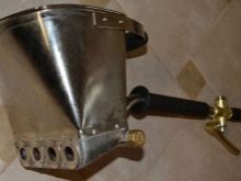 - Не използвайте калай за направата на бункер. Този материал бързо се деформира под тежестта на хоросана. Уверете се, че дебелината на метала не надвишава 1 мм.