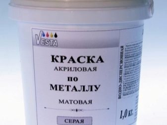 Акрилната боя може да бъде двукомпонентна и многокомпонентна, ако добавите вода или други пластификатори към състава. Боите са устойчиви на влага, UV радиация и климатични фактори. Акрилните опции се използват както на открито, така и на закрито. Гарантираният експлоатационен живот на покритията е 8 години. През това време металът под акрилния материал няма да ръждясва. След този период покритието може да бъде подновено и защитните свойства ще останат.