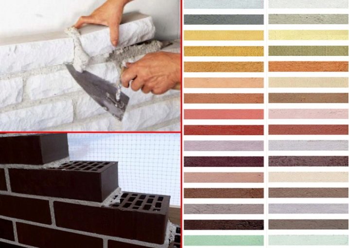 При присъединяването на фасадата е важно да изберете подходящия нюанс на шевовете.. За това има цветна и бяла смес. Първият вариант съответства на разнообразието от нюанси на цветни тухли, а вторият се приготвя изключително на базата на бял портланд цимент.