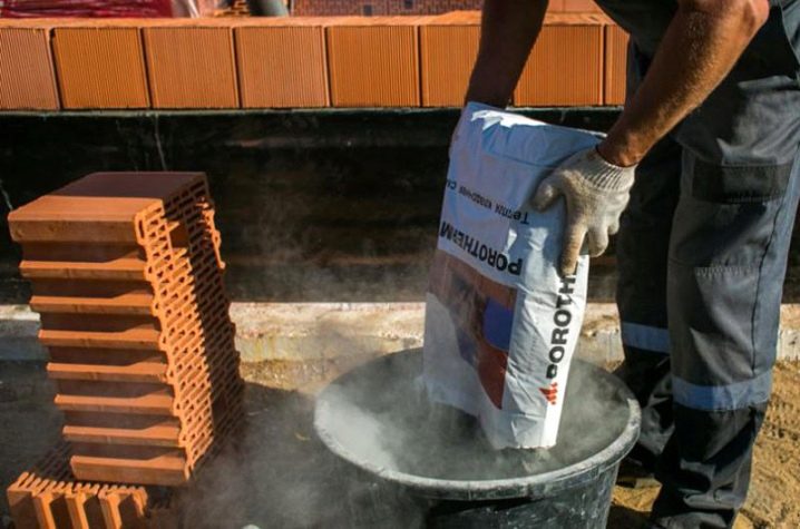 Ако работата се извършва при отрицателни температури (разбира се, този метод не се препоръчва, но в живота се случват всякакви ситуации), тогава ще се получи така наречената “зимна” зидана смес. Той съдържа модификатори, които ускоряват залепването на шева, предотвратявайки проявата на отрицателни свойства на компонентите на сместа, когато температурата спадне..