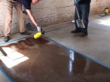 Процесът на нанасяне на матов полиуретанов лак върху бетонен под, вижте по -долу.