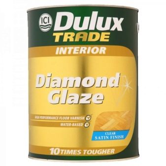 В асортимента на този производител има и друго съединение за обработка на паркетни плоскости – Dulux Trade Diamond Glaze. Поради особеностите на състава и производството, този лак осигурява 10 пъти по-голяма здравина от другите лакове на водна основа..
