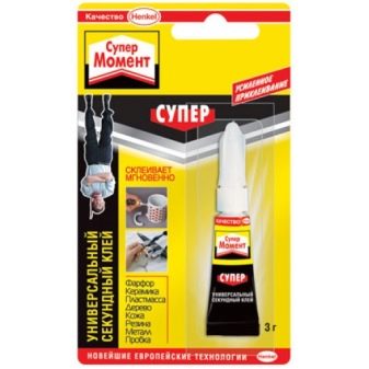 - Изключително силен “Моментна гума”, което ви позволява да залепите гумени части не само един към друг, но и да ги залепите към почти всяка друга повърхност (метал, бетон, дърво, хартия). Особеността на това лепило е, че издържа на излагане на много ниски и много високи температури. Устойчивостта към последното е няколко пъти по -висока.