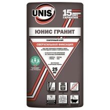 Име: Unis “Гранитно лепило за полагане на тежки плочи от порцеланови каменни изделия, керамика и естествен камък 25 кг”.