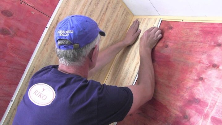 Препоръчва се също така да се обезмасли както повърхността на стената, върху която ще бъде залепен панелът, така и самата PVC лента. В случай, че ситуацията тече и не е възможно стените да се подравнят с тавана, можете да направите дървена или пластмасова щайга и върху нея вече да залепите PVC панели. Заслужава да се спомене, че работата с дърво изисква обработка на материала със специален противогъбичен състав..