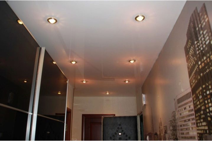 В коридора трябва да се монтират лъскави опънати модели. Те са лесни за почистване и визуално увеличават размера на стаята..