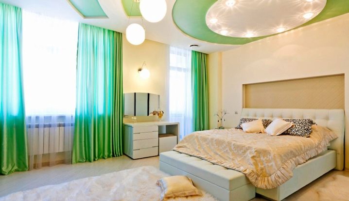 Таваните на две нива ви позволяват да комбинирате матови и лъскави повърхности, да комбинирате два или повече цвята. Такива тавани са в състояние визуално да увеличат височината на помещението и да подчертаят вкуса на собственика. Таваните на две нива се използват в помещения, които се нуждаят от зониране. Преди всичко е спалня.