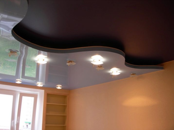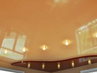 Таваните на две нива ви позволяват да комбинирате матови и лъскави повърхности, да комбинирате два или повече цвята. Такива тавани са в състояние визуално да увеличат височината на помещението и да подчертаят вкуса на собственика. Таваните на две нива се използват в помещения, които се нуждаят от зониране. Преди всичко е спалня.