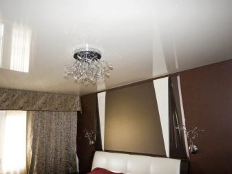 За спалня е по -добре да изберете матов или сатенен PVC таван, както и плат. Този тип няма да отразява слънцето и ще създаде уютно усещане. Не забравяйте, разбира се, че таванът от плат ще ви струва много повече от PVC филм..