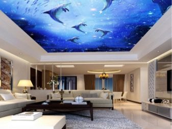 3D таваните ви позволяват да постигнете максимален реализъм на картината. Живеейки в градски апартамент, можете да се почувствате като почиващ сред природата. Достатъчно е да отпечатате прозорец с клон на сакура на тавана. Морските пейзажи ще ви помогнат да се отпуснете и да забравите за притесненията. Колко е приятно да погледнете поляна с красиви цветя, които искат да ги откъснете. И колко хубаво би било да погладите плискащите се делфини, изскачащи от океана.