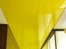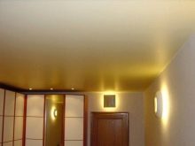 В коридора трябва да се монтират лъскави опънати модели. Те са лесни за почистване и визуално увеличават размера на стаята..