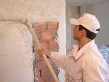 Първата стъпка е да подготвите добре повърхността. Необходимо е да се премахне старото покритие от стената и да се отстранят големи дефекти. Пукнатините и стърготините трябва да бъдат покрити с цименто-пясъчен разтвор, а големите издатини и кривини трябва да бъдат отрязани с мелница. След като разтворът изсъхне, повърхността трябва да бъде обезпрашена и грундирана.