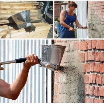 - С метла. Това е най -старият метод за облицовка, който се състои в следното: обикновена метла се потапя в разтвор и удря в дървена пръчка, която се поставя близо до стената. В резултат на удара се образуват насочени пръски, които летят върху стената и се утаяват върху нея. Недостатъкът на този метод е дългото време за инсталиране и необходимостта от определени умения за еднакво прилагане на разтвора. Друг метод на пръскане е методът с помощта на твърда четка и дървен блок, който се потапя в разтвора и рязко се премества върху твърдите четина на четката. Методът също изисква опит..