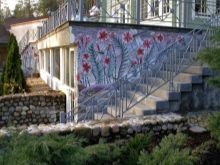 Външните стени най -често са частично украсени с мозаечни кубчета. Въпреки че има къщи, където фасадите са изцяло покрити с живописни платна, направени от малки парченца. Но такива изображения практически унищожават архитектурни форми, превръщайки сградата в една непрекъсната картина..
