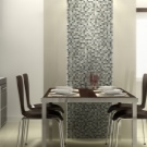 Понякога мозаечните панели се използват за украса на западните части на стаята, за да се разнообрази външният им вид. Така че можете да завършите вграден гардероб, ниша, ъгъл. В резултат на това такива елементи стават много привлекателни и привличащи вниманието..