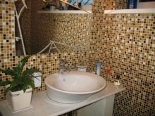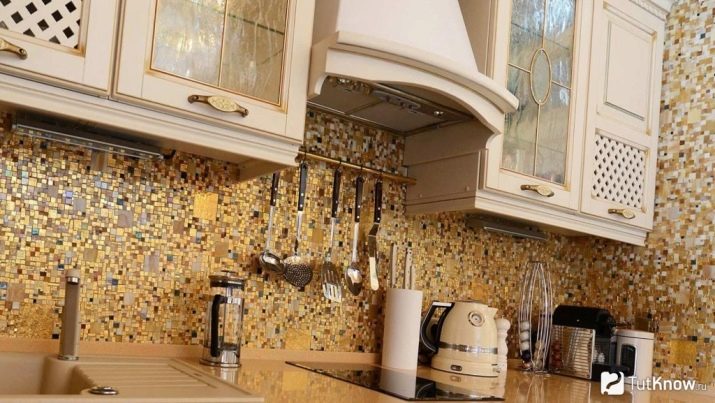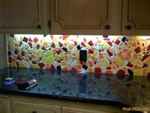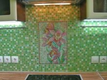 А също така мозайката се използва като красива декорация в допълнение към други материали и мебели. Техниката на декориране на работната повърхност в кухнята с мозаечна кърпа е широко разпространена. Стената между долния слой на мебелите и горния, завършена с мозайки, създава по -привлекателен образ на кухненското оборудване. По същия начин те украсяват работната повърхност в банята между умивалника и огледалото..