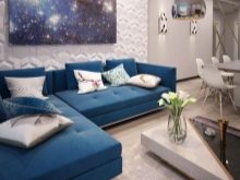 Понякога стената е завършена с по -монохромна мозайка или не твърде ярък модел, но комбинирана с група мебели, например, гипсовата облицовка е подходяща за тази цел. Кадифената текстура на мека мебел подчертава красотата на лъскавата мозайка. Мебелна група, например красив диван и мозайка, трябва да се допълват взаимно по цвят. В случай на успешно решение, такъв елемент ще стане основният в стаята..