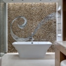 Поради това някои скали могат да понасят лошо въздействието на съвременните детергенти, да започнат да избледняват и да се рушат.. Ето защо е по -добре да украсите сухи помещения с камък.. Можете също така да използвате малки камъчета с естествени форми и камъчета, валцувани от морски вълни, за украса на стени..