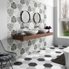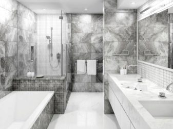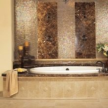 Интересна техника е да комбинирате различни плочки, често противоположни на външен вид. Това е комбинация от монохроматични и боядисани, гладки и релефни, матови и лъскави, плочи с различни размери и конфигурации, които отговарят помежду си.