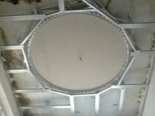 Общата рамка на двустепенния опънат таван е готова. Тогава забавлението започва..