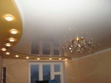Тъканите са много по -скъпи от PVC фолиото и в същото време изглеждат по -елегантни и луксозни. Виниловите тавани дават повече светлина, особено ако инсталирате допълнителни лампи, насочени към лъскавата повърхност на такова покритие. Тогава ще се появи ефектът на огледало – и цялата стая ще бъде залята със светлина..