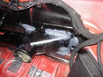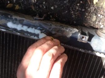 Ако трябва да се справите с радиатор, той се продухва с компресор с помощта на вода и се определят места с повреди. В този случай запечатването чрез “студено заваряване” е временно решение на проблема и е наложително да се предприемат по -сериозни стъпки. Ако има проблем в шумозаглушителя, тогава лепилото може да се използва само ако премине според температурния индикатор. Най -добре е първоначално да придобиете състав, който да издържа на максимални температури.