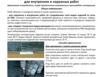 - За лепене на линолеум – съставът е способен да свързва плътна гума и затова е идеално подходящ за работа с подови настилки. Използването на лепила и двустранна лента дава много по-лош резултат от “студеното заваряване”.