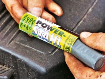Ако се работи с автомобилни части: радиатор, резервоар за газ, ауспух, тогава се използва състав с метален пълнеж. За тези опции, когато операцията се извършва под въздействието на температури и това са някои части, както и компоненти на машината, е важно да се избере топлоустойчив сорт. Избирайки правилния сорт, трябва да разберете, че използването на “студено заваряване” за тези части, които се експлоатират под налягане, е невъзможно, този състав няма да издържи и ще се спука. Изключение правят топлоустойчивите сортове, които са няколко пъти по-силни, което означава, че седят по-здраво на място..