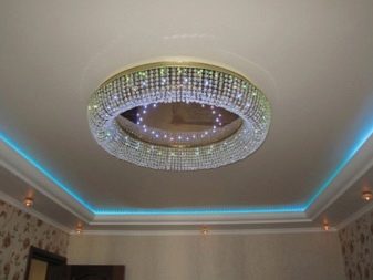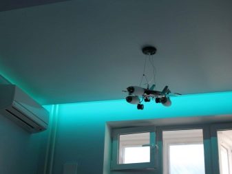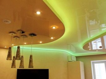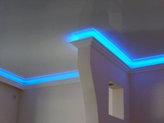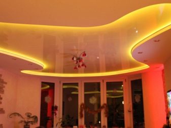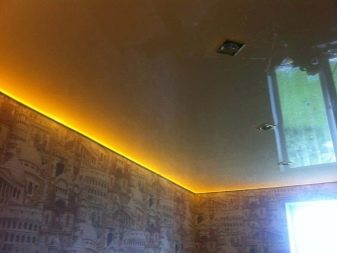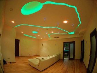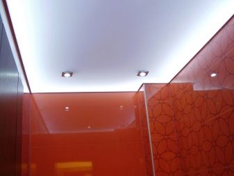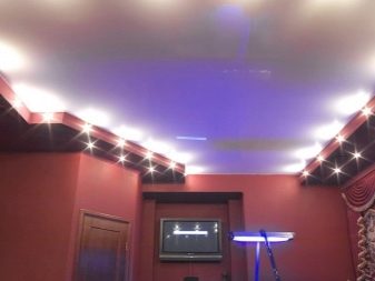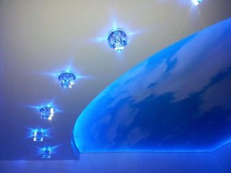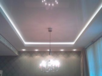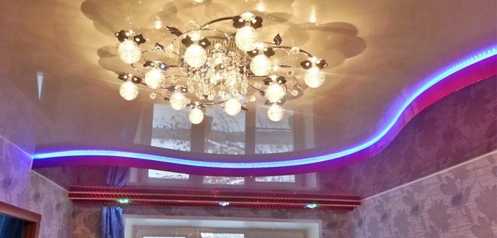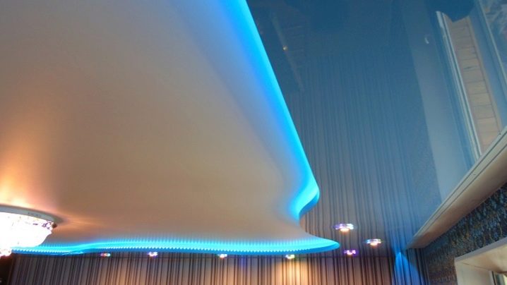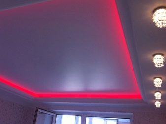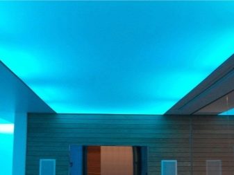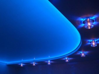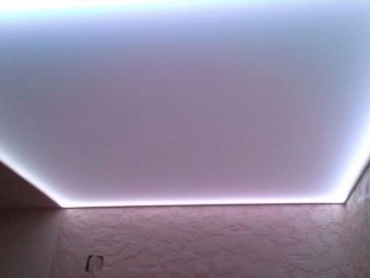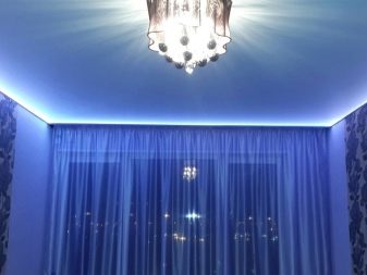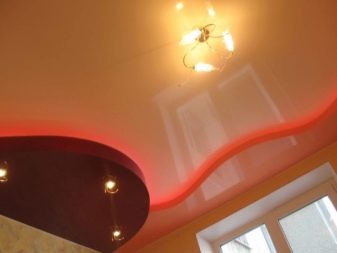 Опънатите конструкции са добри, защото могат да се използват за отстраняване на всякакви недостатъци в дизайна на тавана, свързани с оформлението на апартамент или частна къща. В същото време подсветката изпълнява не само основната функция: умишлено подчертава дизайнерските характеристики (например счупена перспектива, колони, издатини), предавайки ги като предимства на оформлението.