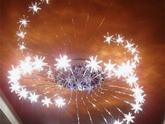 За съвременните интериорни композиции присъствието на метал в подреждането на стаите е важно, поради което подобно осветление ще бъде напълно хармонично завършване на таванския дизайн.