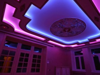 Използването на такива източници на светлина предполага широка гама от нюанси. В допълнение към класическите неутрални решения, можете да изберете опции за неоново осветление в палитрата. Закупуването на светодиоди няма да бъде трудно: във всеки специализиран магазин има голям асортимент от тях. Можете да закупите обикновени сортове или дизайнерски (например под формата на звезди, цветя).