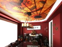 Прави впечатление, че не само широкоформатният печат може да се прилага върху платна, но и да се рисува самостоятелно или с помощта на майстори. По този начин можете да създадете изключителен таван, който ще подчертае оригиналността, изяществото и стила на интериора..