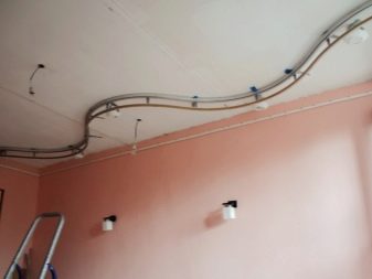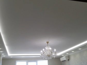 С този тип дизайн на тавана става възможно да се скрият комуникациите (проводниците) и повърхностните неравности. Но въпреки всички предимства, няма да е възможно да се инсталират осветителни устройства по обичайния начин, това ще изисква специални материали и инструменти.