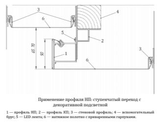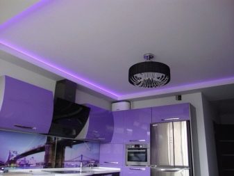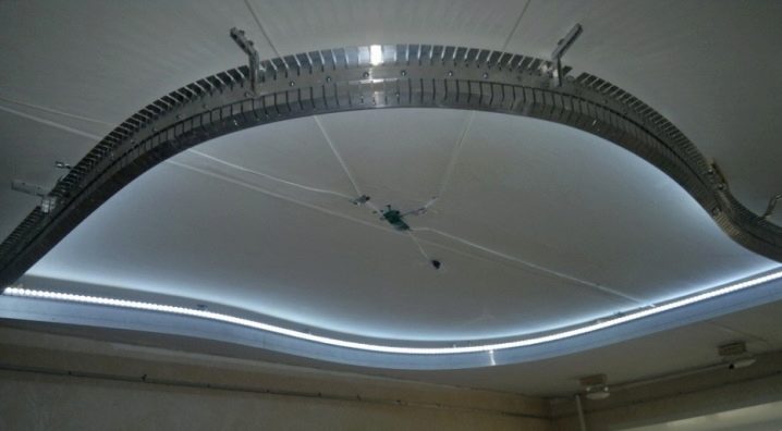 При използване на LED ленти е необходимо по време на монтажа на рамката да се постави специален рафт, в който тя да се държи. Този начин на организиране на осветлението ще създаде ефект на плаващ таван, тъй като разсеяната светлина ще пада върху горния слой на тавана. Рафтът с лента няма да се вижда отдолу след монтажа.