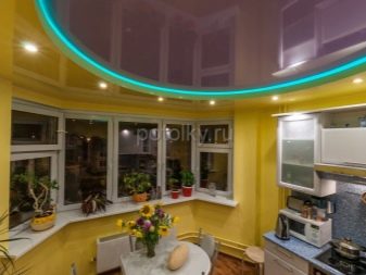 Също така от предимствата може да се открои лекотата на самия дизайн и възможността за организиране на оптимално осветление. С помощта на правилно изпълнено осветление на опънат таван можете да създадете необичайни ефекти в интериора..