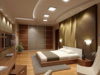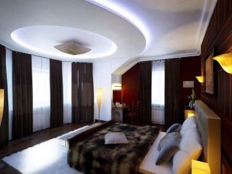С правилното и интересно осветление, инсталирано в таваните на две нива, можете да придадете на помещенията визуална простор, атмосфера на лукс. Създават се необичайни ефекти, включително 3D. В помещения с различно предназначение можете да използвате или неутрална, успокояваща светлина (подходяща за спални, детски ясли), или ярка контрастна светлина (кухня, кабинет).