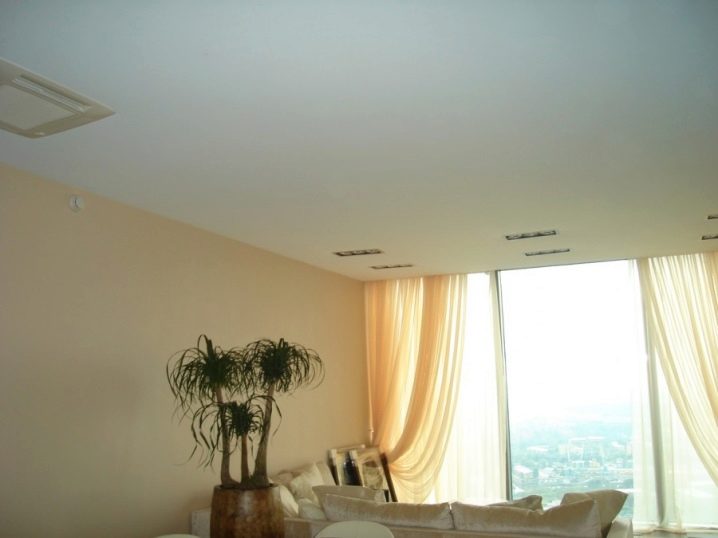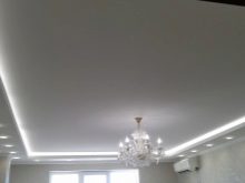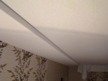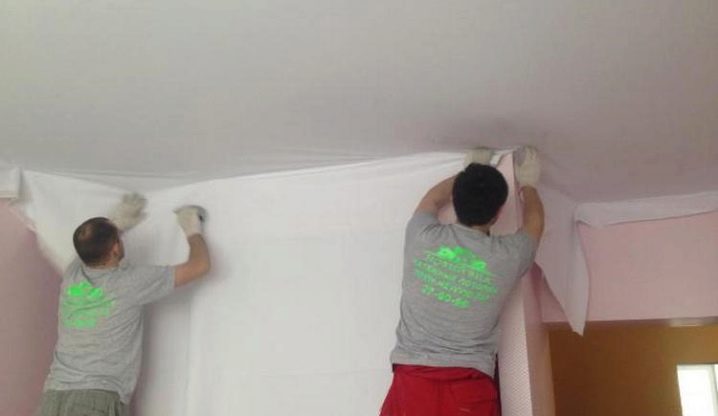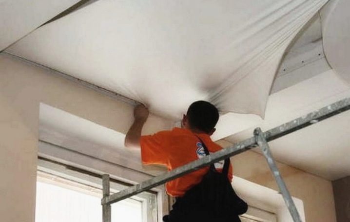 - Липса на способност за разтягане не позволява използването на плат за създаване на сложни конструкции и довършване на широки тавани. Максималната ширина е 5 метра, в противен случай ще трябва да направите шев върху тъканта, което значително ще развали външния вид.