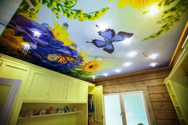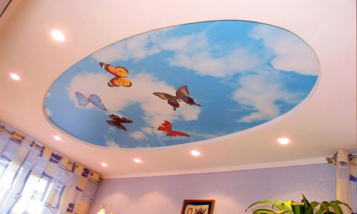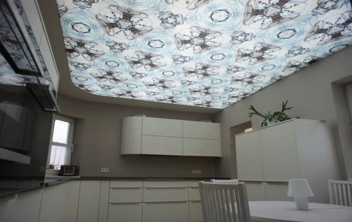 - Таван с фотопечат Това е огромна възможност за дизайнерите. Всяко изображение може да се приложи към тъканта, което ще направи стая с скучен интериор необичайна и оригинална.