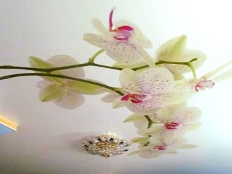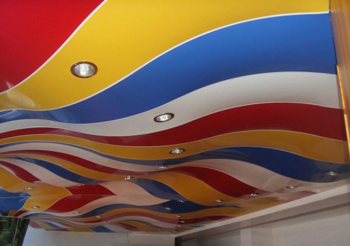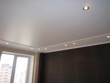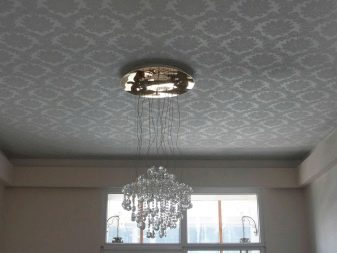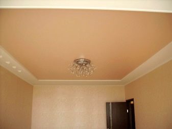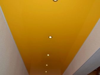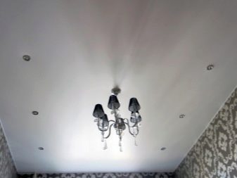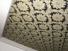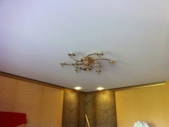 Такива материали могат да съдържат вредни компоненти, които ще причинят непоправима вреда на тялото. Пламенните фенове на подчертания блясък не трябва да спират до тавана на тъканта. Той няма да може да осигури лъскавия ефект, на който са способни филмите. Разбира се, сред платна има лъскави опции, но те отстъпват на PVC филмите по отношение на отразяването..